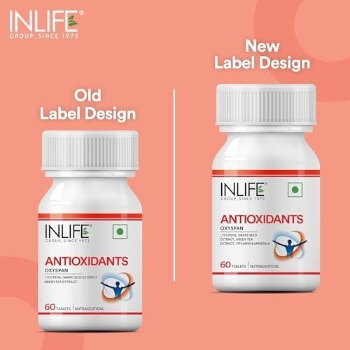 INLIFE Antioxidants Tablets feature a smart blend of Lycopene, Grape Seed Extract, and Green Tea Extract, combined with essential vitamins and minerals. Antioxidants act as the body?s natural defenders, shielding cells from the harmful impact of free radicals. If left uncontrolled, these free radicals can damage healthy cells and contribute to various health issues. One of the key advantages of antioxidants is their role in strengthening the immune system. A weakened immune system can make it harder for your body to fight off infections and may lead to common health concerns. Therefore, maintaining a robust immune system is crucial. Recommended use: Take one tablet daily after meals, or as advised by your healthcare provider.