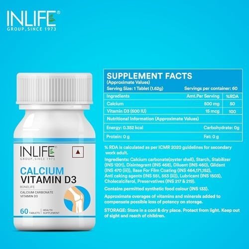 - INLIFE Calcium supplement is fortified with Vitamin D3, which helps improve your body?s absorption of Calcium.
