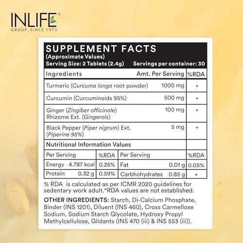 INLIFE Curcumin with Piperine 1605mg – 60 Tablets – Fast Shipping to USA & Canada