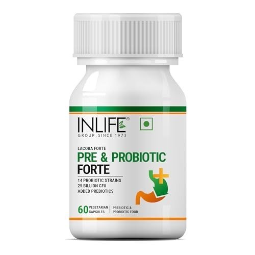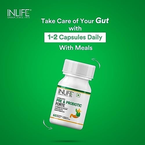 - Inlife Pre & Probiotics Forte is a thoughtfully formulated supplement containing 25 billion CFU and 14 distinct probiotic strains. Enhanced with fructooligosaccharides (FOS), a prebiotic ingredient, it helps promote a healthy gut microbiome. The product is available in easy-to-take vegetarian capsules.