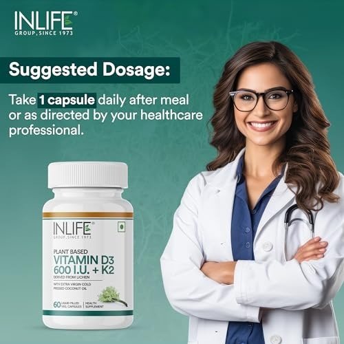 • Plant-derived Vitamin D3 (600 IU) with Vitamin K2 – 60 Capsules