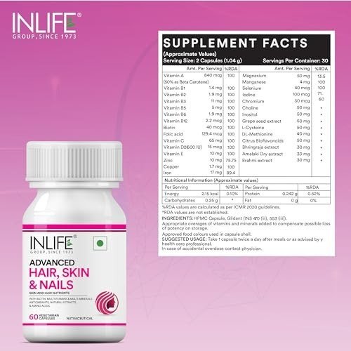 INLIFE Hair Skin & Nails Advanced Supplement – 60 Capsules – Fast Shipping to USA & Canada