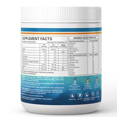 INLIFE Japanese Marine Collagen and Biotin Supplements for Hair | Fish Collagen Powder for Skin & Hair Health | Suitable for Women and Men (Orange Flavor, 200g Fish Collagen Powder, 60 Vegetarian Capsules)