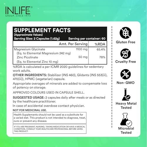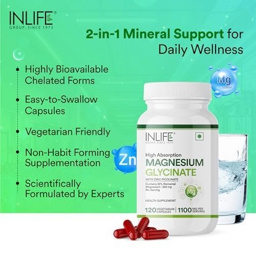 INLIFE Magnesium Glycinate 1100mg with Zinc – 120 Capsules – Fast Shipping to USA & Canada