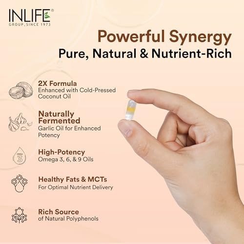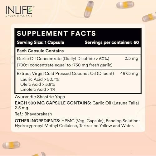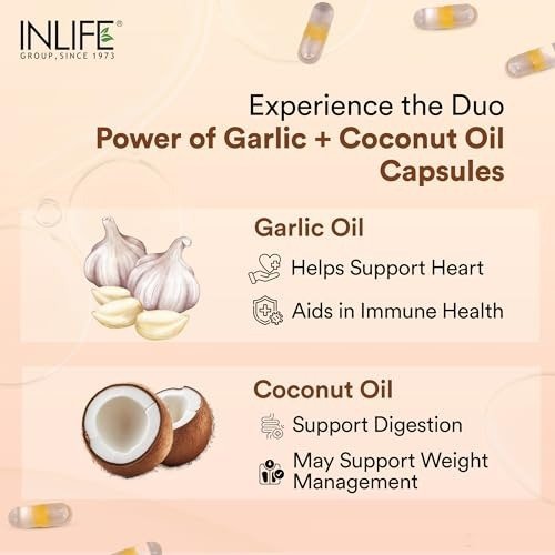 INLIFE Natural Garlic Oil with Coconut Oil – 60 Capsules – Fast Shipping to USA & Canada