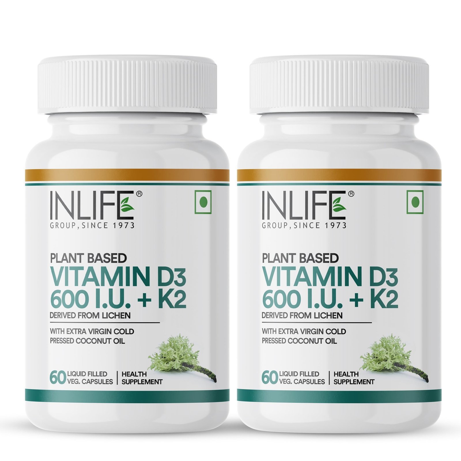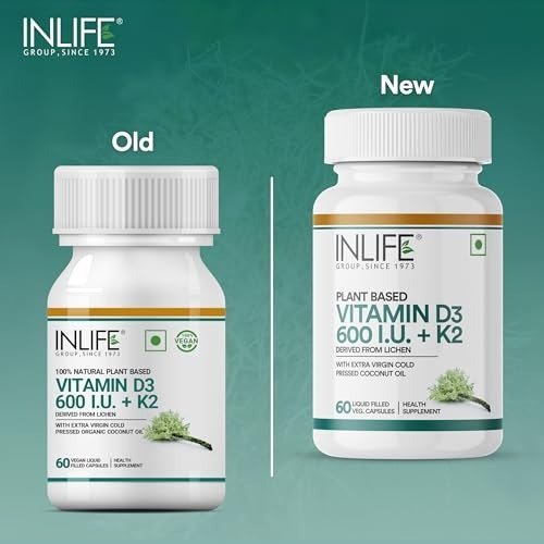 INLIFE Plant Based Vitamin D3 K2 with Coconut Oil – 60 Capsules – Fast Shipping to USA & Canada