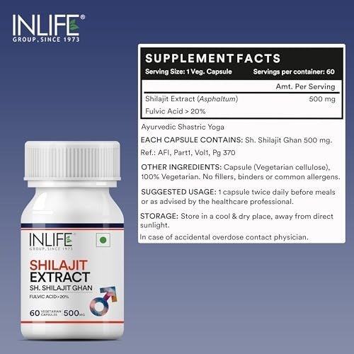 INLIFE Shilajit is a remarkable herbal supplement for men, known to enhance testosterone levels and support overall performance across various areas of life. The fulvic acid in our Shilajit is provided in its purest and most natural state, which is essential for expanding cell membranes and delivering minerals deep within the cells. For best results, consume one capsule two times a day, or follow the advice of your healthcare provider.