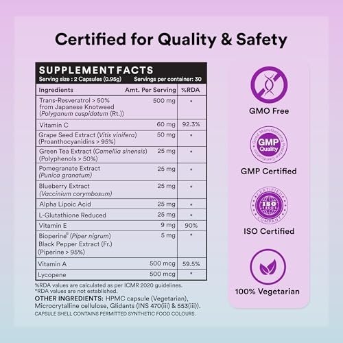 - Ultra-Pure Resveratrol Blend – Every dose delivers 750 mg of a sophisticated antioxidant combination, including 500 mg of Trans-Resveratrol sourced from Japanese Knotweed (standardized to 50% trans-resveratrol), designed to promote cellular health and maintain oxidative equilibrium.