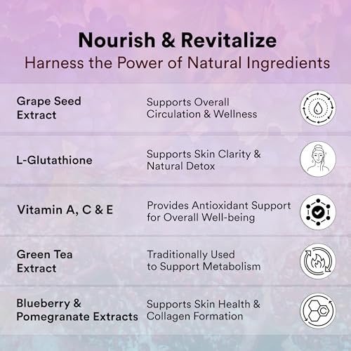 - Comprehensive 12-in-1 Antioxidant Blend – Fortified with Grape Seed Extract, Vitamin C, Green Tea Extract, Pomegranate, Blueberry, Alpha Lipoic Acid, and L-Glutathione, this powerful supplement is crafted to support general health and promote lasting vitality.