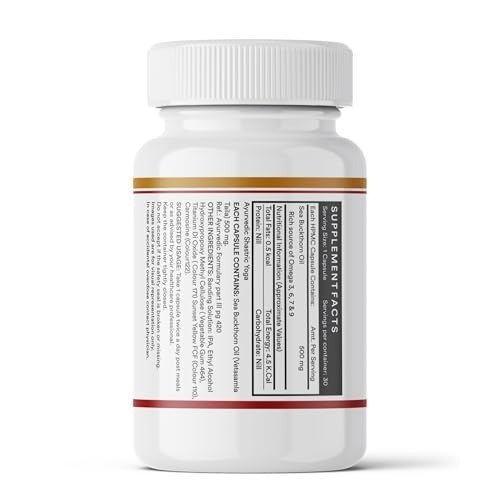 - Complete Omega Fatty Acid Blend – Every 500mg seabuckthorn oil capsule delivers a potent supply of Omega 3, 6, 7, and 9 fatty acids.