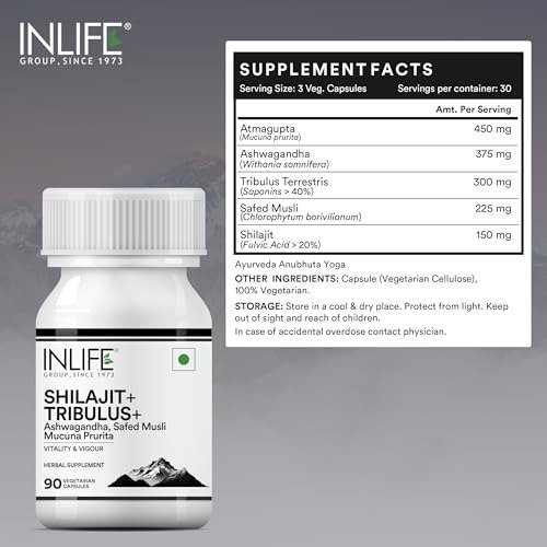 INLIFE Shilajit with Safed Musli & Gokshura – 90 Capsules – Fast Shipping to USA & Canada