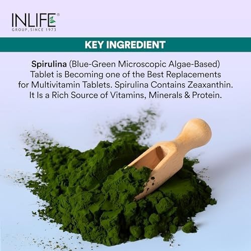 INLIFE Spirulina vegetarian capsules are made from Spirulina, a type of microalgae renowned for its numerous health advantages. This natural ingredient has been utilized for centuries due to its impressive benefits. Spirulina is particularly rich in fiber, which is well-known for supporting weight management. Often referred to as a ?superfood,? each capsule contains 500mg of Spirulina extract. Additionally, it aids in detoxifying the body. Spirulina is packed with antioxidants that promote healthy digestion and boost metabolism. As your metabolism improves, your immune system also functions more efficiently. This microalgae also supports eye and brain health. With its countless health benefits, incorporating Spirulina into your daily routine can be highly beneficial.