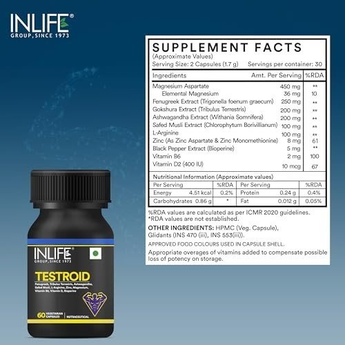 INLIFE Testroid Testosterone Support – 60 Capsules – Fast Shipping to USA & Canada
