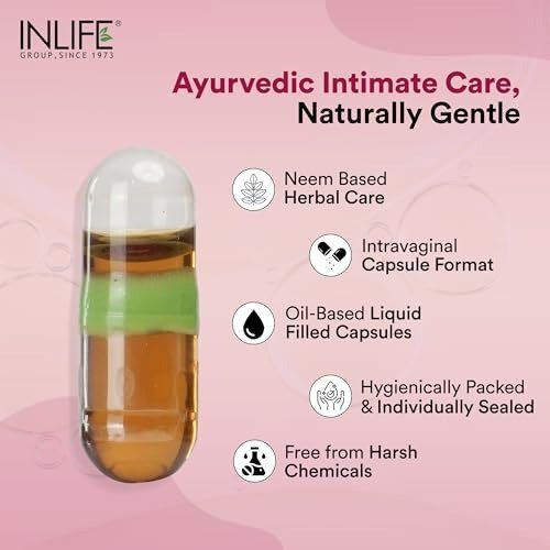 Vaginal Hygiene Support – Inlife Vaginal Health capsules are specially developed with Neem Seed Oil (Nimba Taila) to promote a clean, fresh, and balanced intimate area as part of your daily self-care regimen.