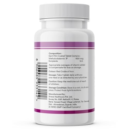 INLIFE Vitamin B12 1,500 mcg Methylcobalamin Tablets | Supports Energy & Nervous System Health for Men & Women – 60 Tablets