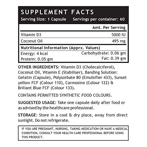 - Ultra-Strength Vitamin D3 – Every softgel delivers 5,000 IU of cholecalciferol (Vitamin D3) suspended in an oil-based formula.