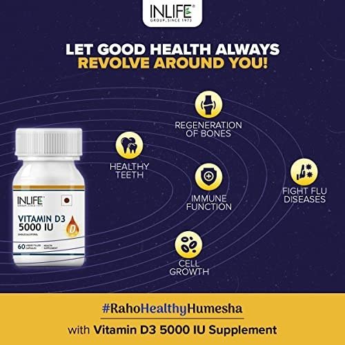 INLIFE Vitamin D3 5000 IU with Coconut Oil – 60 Softgels – Fast Shipping to USA & Canada