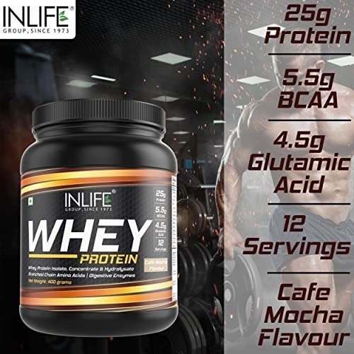 - WHEY PROTEIN: INLIFE Whey Protein (combination of Whey Protein Isolate & Concentrate), your muscles absorb the protein very fast, it’s the best kind of protein powder if you want to improve body composition.It has 25g protein per serving, ideal for protein synthesis and building muscle. Its high in BCAA’s and EAAS, they help to protect your muscles, increase muscle mass, resistance and help with your overall hormonal environment.