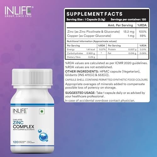 INLIFE Zinc Complex with Copper – 60 Capsules – Fast Shipping to USA & Canada