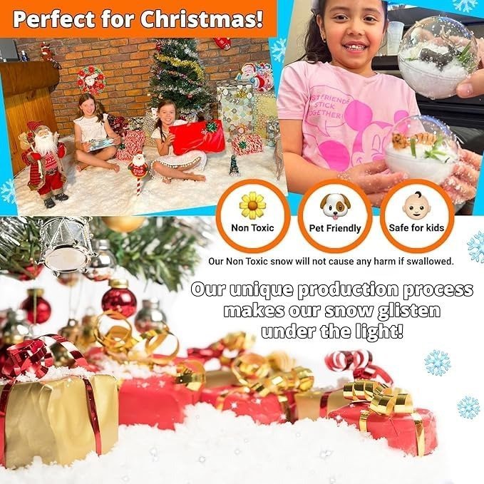 - INSTANT TRANSFORMATION: Simply mix with water to produce soft, fluffy artificial snow that grows up to ten times its initial volume-ideal for festive decorations and winter-inspired activities.