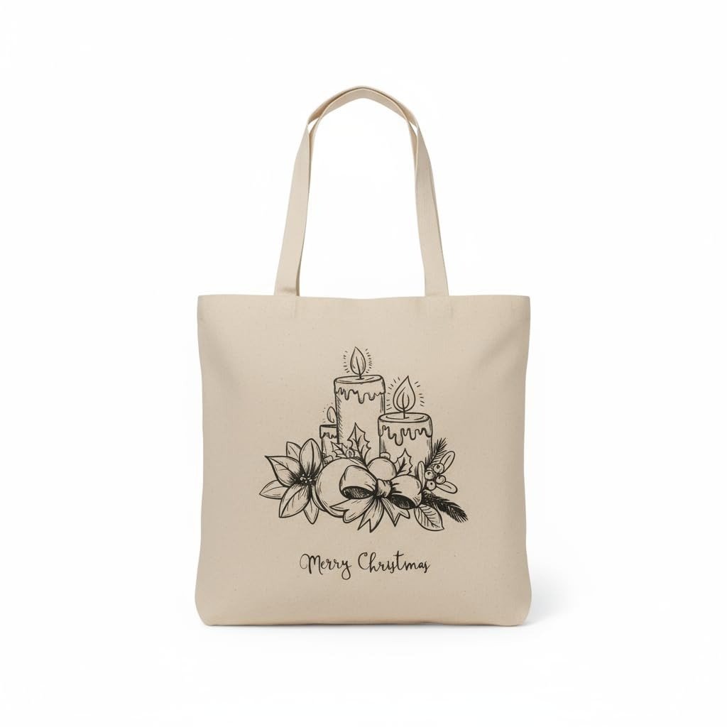 Itsy Bitsy Christmas Pre-Printed Colour Your Own Tote Bag Christmas Candles | DIY Holiday Craft for Kids & Adults | 12.75 x 12.75 Inch Fabric Bag 1pc – Fast Shipping to USA & Canada