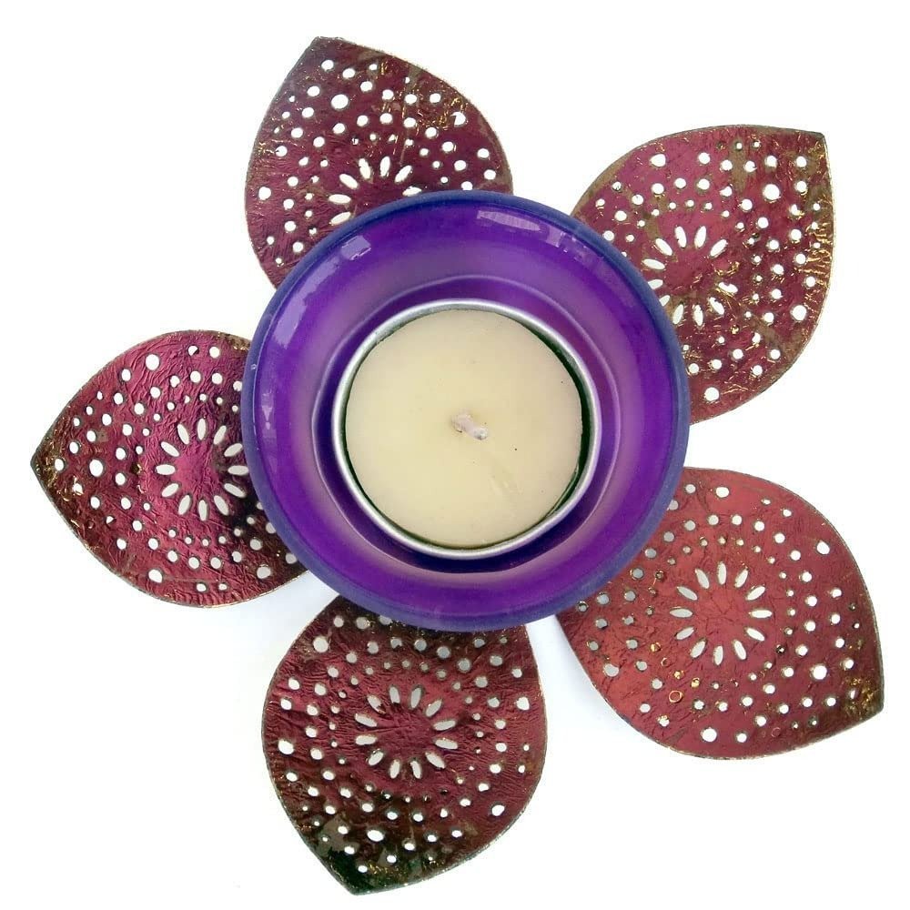 Elevate your home decor with the radiant Lotus tealight holder by JaipurCraft. Expertly handcrafted from finely etched iron sheets, this piece features exquisite gold leaf plating shaped into a graceful lotus flower. When a tealight is placed inside and illuminated, the intricate cutwork casts mesmerizing patterns of light and shadow. Offered in a selection of gold-leaf finishes on iron, this Lotus tealight holder brings a touch of elegance and sophistication to any space.