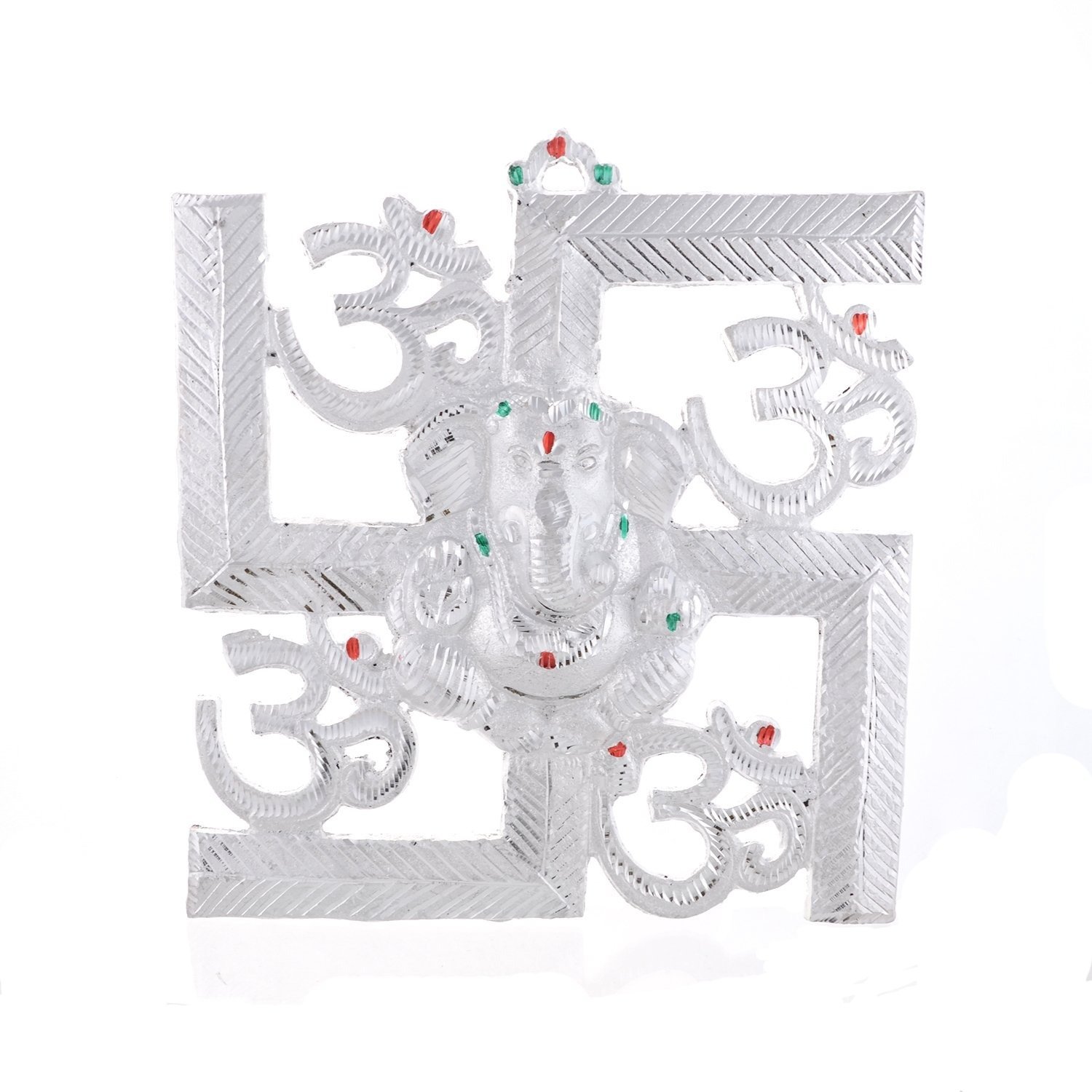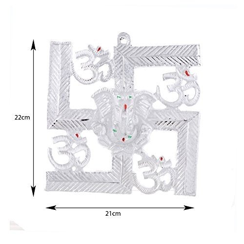JaipurCrafts Aluminium Wall Hanging of Lord Ganesha On Swastik with Om Showpiece – (22.86 cm, Silver) – Fast Shipping to USA & Canada