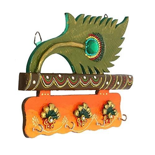 JaipurCrafts Beautiful Mor Pankhi Wooden Key Holder for Home and Office Decor (4 Hooks, 9 in x 6 in) – Fast Shipping to USA & Canada