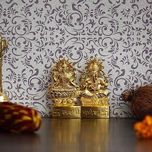 JaipurCrafts Laxmi Ganesh Gold Plated Statue – Idol for Car Dashboard, Home, Office DECOR, Gifting Decorative Showpiece, Temple Gift (Zinc, Golden)- 2.75 in x 2.75 in – Fast Shipping to USA & Canada
