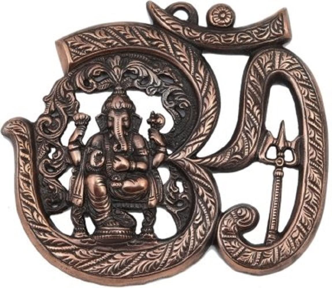 JaipurCrafts Matel Wall Hanging of Lord Ganesha Inside Om Showpiece – 17.78 cm (Aluminium, Brown) – Fast Shipping to USA & Canada