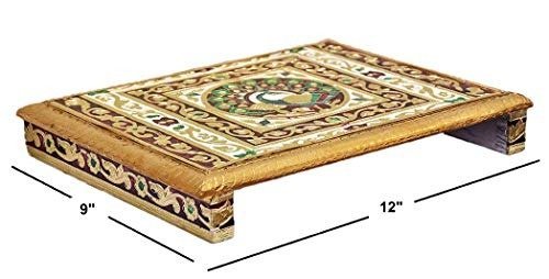 JaipurCrafts Peacock Designed Wooden Meenakari Rajwadi Chowki/Patla | Wooden patla for puja-8.50″x 11″x 2.50″ Inch – Diwali Decorations Items, Pooja chowki for Diwali – Fast Shipping to USA & Canada