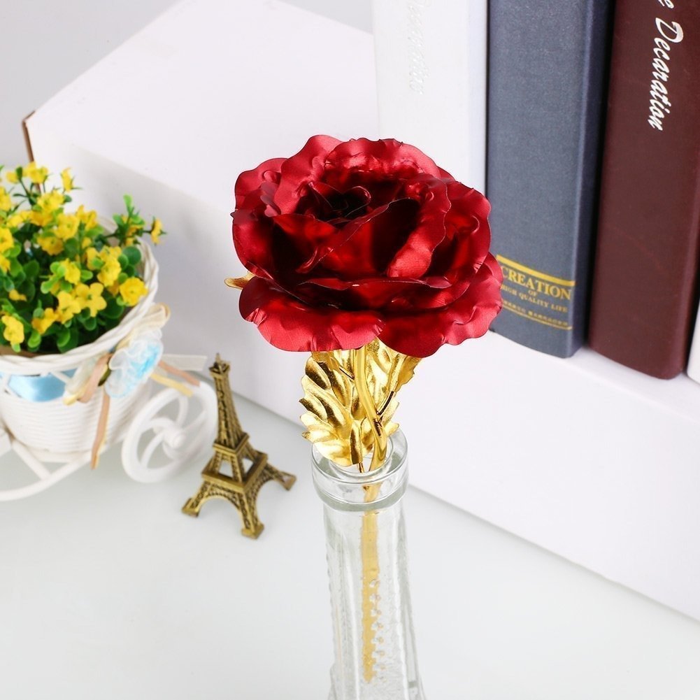 - A romantic Valentine?s Day gift for girls, boys, girlfriends, boyfriends, husbands, wives, or couples: a decorative artificial red rose flower, plated with 24k gold, measuring 10 inches, and presented in a gift box (Red).