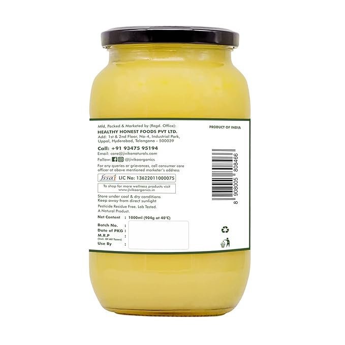 - Zero Trans Fats : Since Jivika Naturals A2 Desi Cow Ghee is made from whole curd, it does not contain any bad cholesterol content or trans fats. It is also great for promoting heart health.