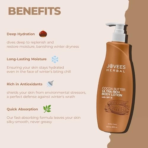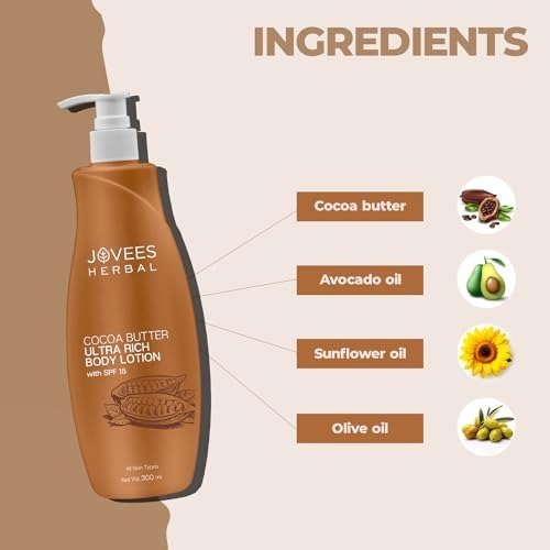 Jovees Cocoa Butter Body Lotion Provides Deep Moisturisation | Non Sticky Body Moisturizer With Cocia Butter | Winter Body Lotion For Smooth and Healthy Looking Skin | For Very Dry Skin- 300ml – Fast Shipping to USA & Canada