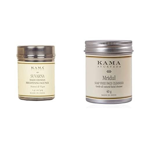 Kama Ayurveda Suvarna Haldi Chandan Brightening Face Pack, 40g & Kama Ayurveda Mridul Soap-Free Face Cleanser, 40g – Fast Shipping to USA & Canada