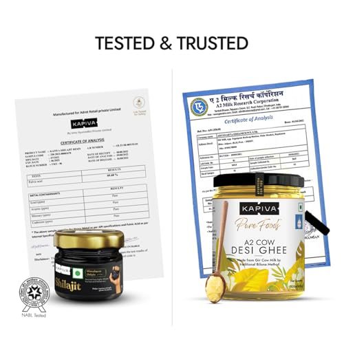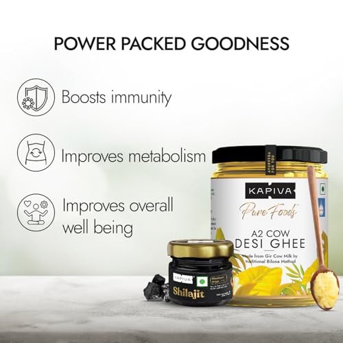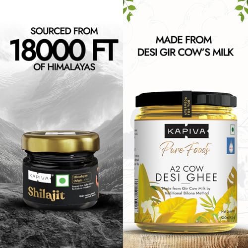 Kapiva Himalayan Shilajit – Unleash Your Endurance! Packed with over 60% Fulvic Acid and more than 80 trace minerals, our Shilajit is designed to revitalize and energize you from within. Kapiva A2 Cow Desi Ghee 500ml | 100% Pure Desi Gir Cow Ghee | A2 Milk Certified Ghee | Crafted Using the Vedic Bilona Method, Curd-Churned | Pure, Natural, and Wholesome | Grass-Fed, Cultured, Premium, and Traditional Ghee.