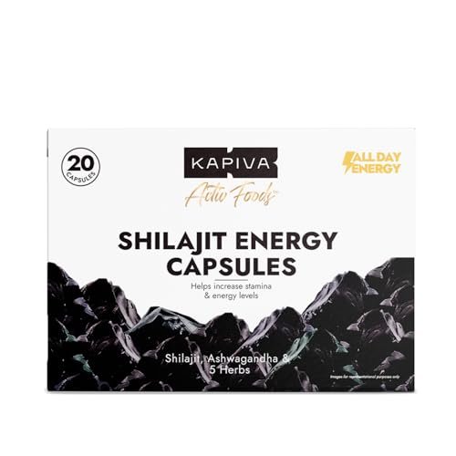Kapiva Shilajit/Shilajeet Energy 20 Capsules | Made with 100% Pure Shilajit | For All Day Energy & Stamina | With Ashwagandha,Gokshura | 100% Ayurvedic – Fast Shipping to USA