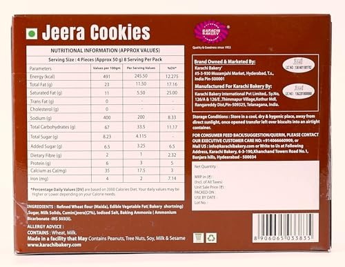 - Unique Cumin Essence: Savor the deep, robust flavor of cumin in each cookie. Top-Notch Ingredients: Made with the highest quality components for an unparalleled taste and texture. Artisanal Craftsmanship: Carefully prepared to ensure outstanding quality and freshness. Perfect for Gifting: An excellent choice for any event, bringing a hint of gourmet elegance. Renowned Legacy: Karachi Bakery, a name associated with excellence since 1953, providing unrivaled taste and satisfaction.