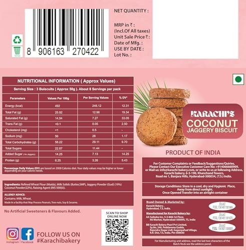 Karachi Bakery Osmania Biscuits, 400g Karachi Coconut Jaggery Biscuits 400gm – Fast Shipping to USA & Canada