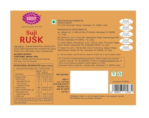 7 reviews for Karachi Bakery Suji Rusk, 250g – Fast Shipping to USA & Canada