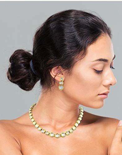 - Karatcart 22K Gold-Plated Round Kundan Single Strand Necklace Set for Women