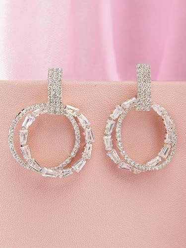 KARATCART Gold Plated Cubic Zirconia Round Dangler Earrings for Women – Fast Shipping to USA & Canada