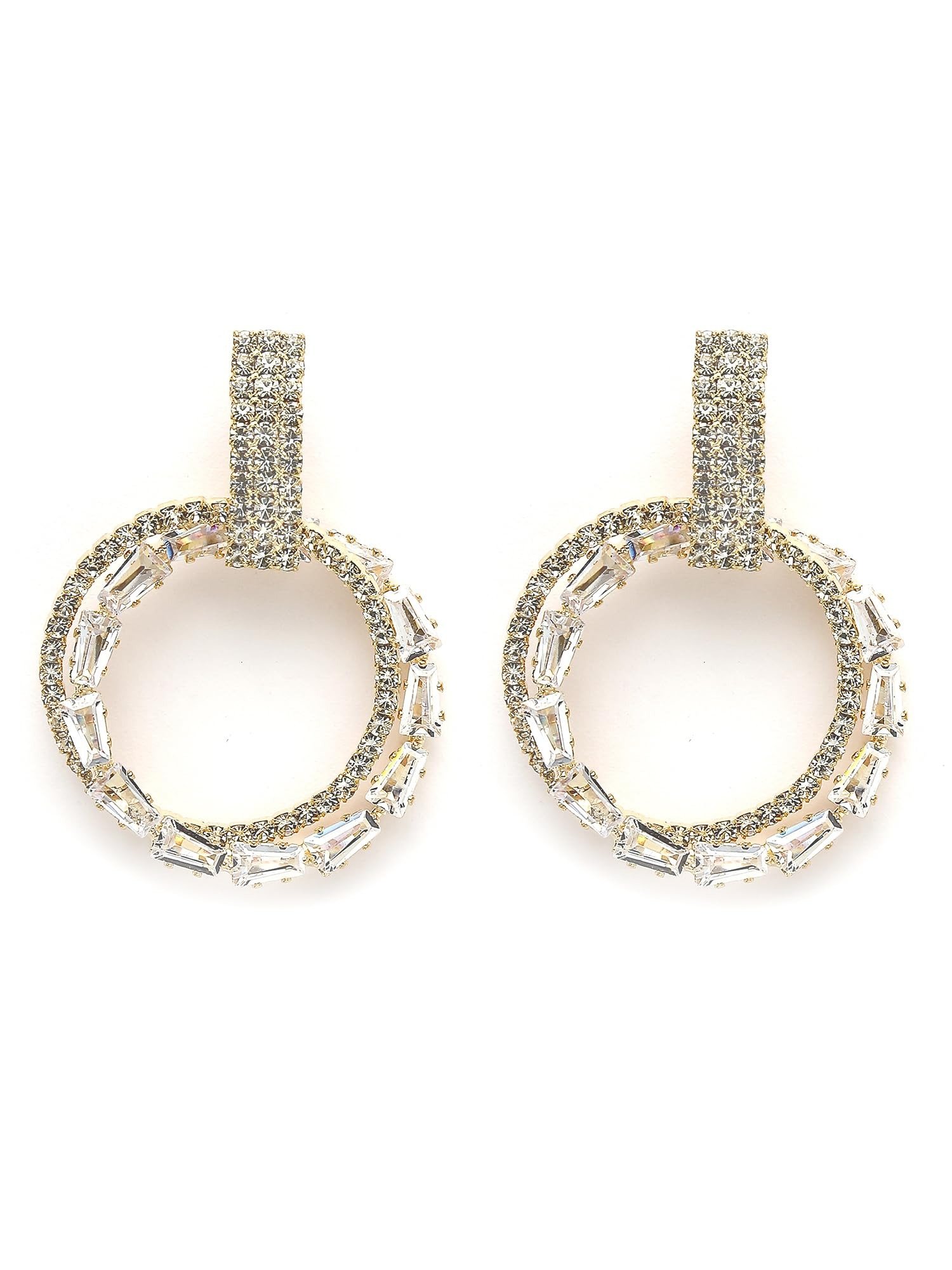 - KARATCART presents gold-plated cubic zirconia round dangler earrings for women. Crafted from premium materials, our products feature a skin-friendly plating, designed with care to touch your heart.