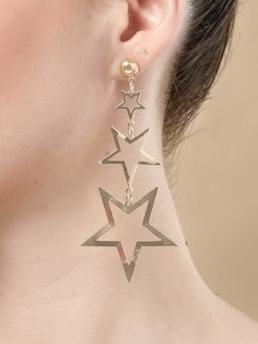 - KARATCART Gold-Plated Dangler Earrings featuring a Graduating Star Design. Our items are crafted from premium materials and are adorned with a skin-friendly plating, thoughtfully designed to touch your heart.