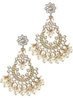 - Classic Kundan Chandbali Earrings adorned with pearls and gold plating. Crafted from premium metal alloy in accordance with international standards, ensuring they are gentle on the skin.
