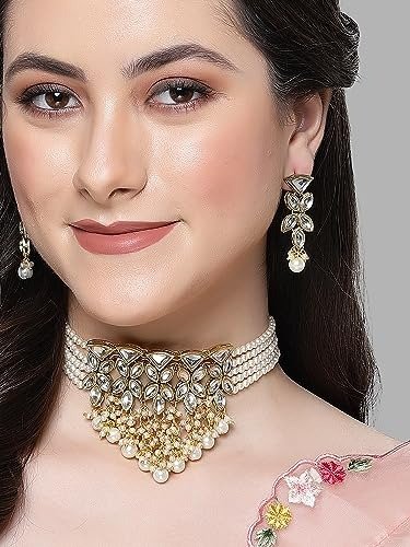 7 reviews for Karatcart Gold Plated Pearl Studded Kundan Choker Necklace Set for Women – Fast Shipping to USA & Canada