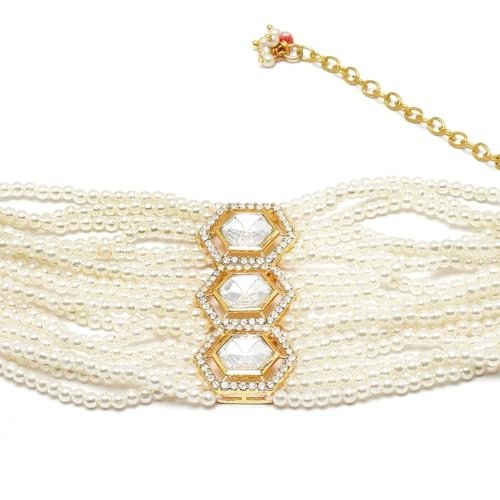 - Karatcart presents a gold-plated bracelet adorned with Polki, Kundan, and pearl beads, specially crafted for women. Our items are made from premium materials and feature a skin-friendly plating, designed with care to touch your heart.