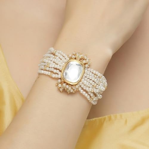 Karatcart Golden Polki Kundan Pearl Beaded Bracelet for Women – Fast Shipping to USA & Canada
