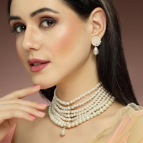 7 reviews for Karatcart Pearl Beaded Kundan Choker Necklace Set for Women – Fast Shipping to USA & Canada