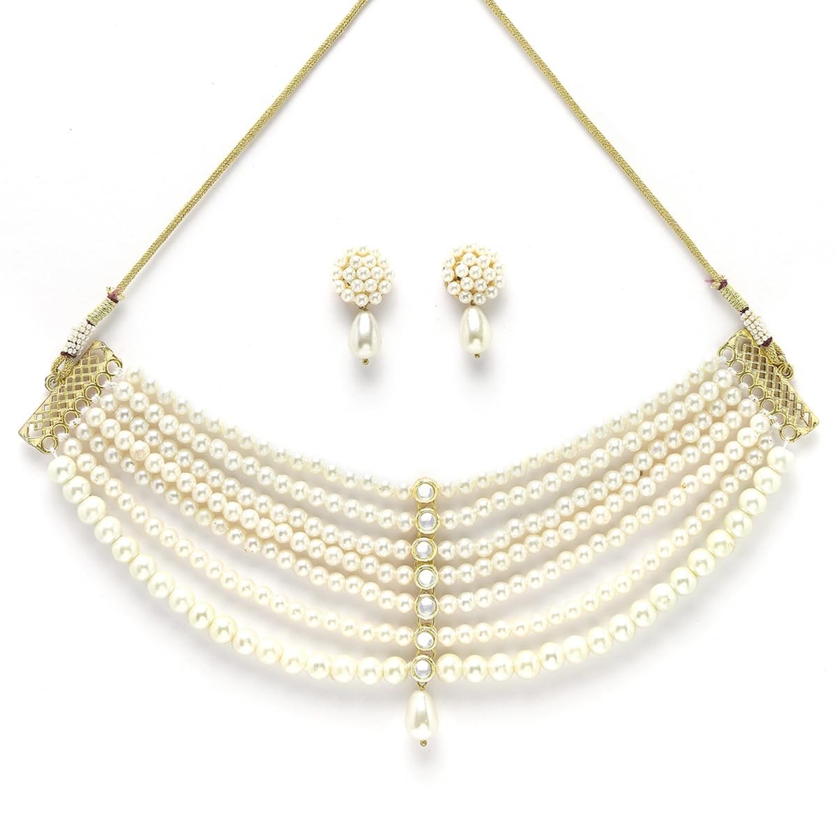 Karatcart Pearl Beaded Kundan Choker Necklace Set for Women – Fast Shipping to USA & Canada